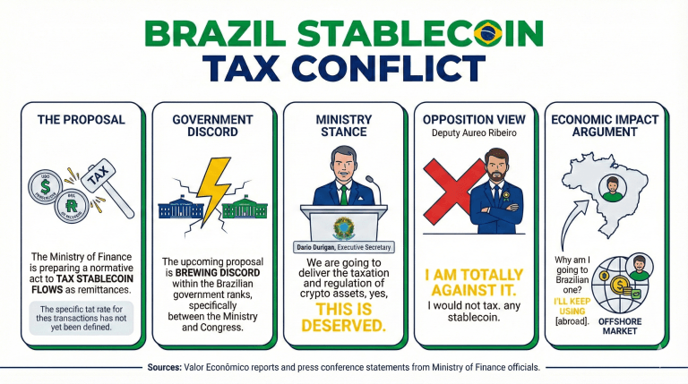 一项即将提出的提案旨在将稳定币流动视为汇款征税,这在巴西政府内部引发了不和,因为财政部正准备采取行动。