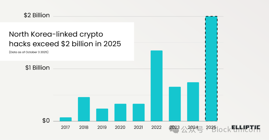 2025 年 1 月至 9 月,与朝鲜有关联的黑客窃取的加密货币金额已超过 20 亿美元。据区块链分析公司 Elliptic 称,2025 年已成为有记录以来数字资产犯罪金额最高的一年。