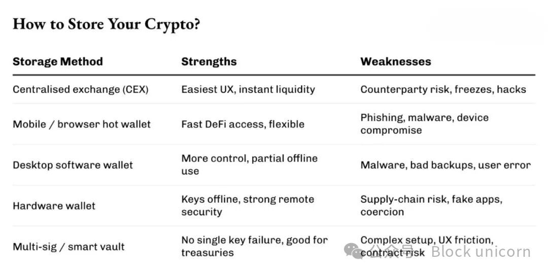 虽然表面上看安全文化有所提升,但风险已从托管式安全措施转移到了用户自行解决问题的混乱局面。电脑上的浏览器扩展程序、保存在手机聊天记录或电子邮件草稿中的助记词以及存放在未加密笔记应用中的私钥,都无法有效抵御潜伏的危险。