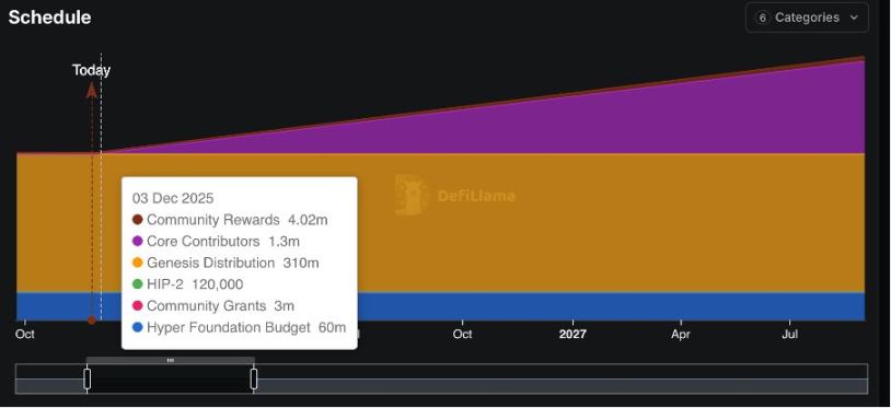 Starting from November 29, 2025, 373 million HYPE will be unlocked (approximately 37% of the total supply), with about 215,000 HYPE unlocked daily over a 24-month period. At current prices, this will create a potential supply pressure of about $200 million per month.