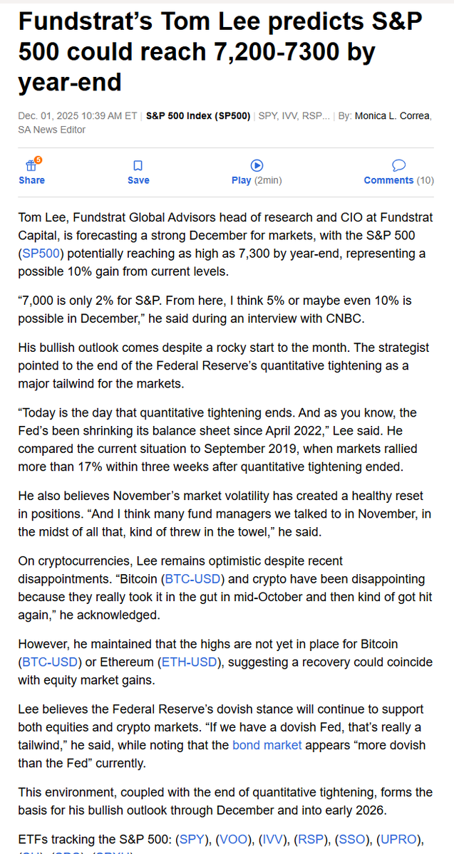 前边看到 Fundstrat 的 Tom Lee 预测标普 500 指数年底可能达到 7