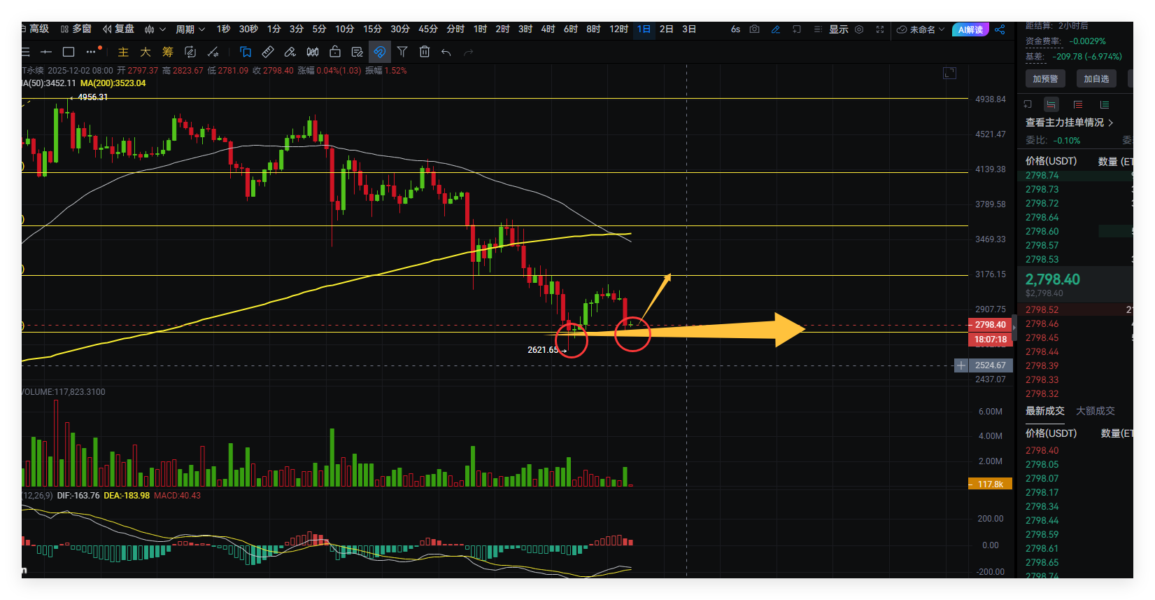 From the daily chart, Ethereum's movement is quite similar to Bitcoin's. Yesterday's decline once again tested the short-term support around 2,750 before closing with a pin bar. Currently, the movement has not broken down. Long-term holders of long positions need not panic and can continue to hold. For short-term trading, long positions can be arranged around 2,760; aggressive traders can enter directly, with a stop loss at 2,660. The target is 2,950-3,010. After reaching this point, pay attention to whether it can effectively break through 3,170. If it breaks through, we can chase the trend. Based on market movements, seize the opportunity to enter; for short-term trading, control risks and manage your own profits and losses.