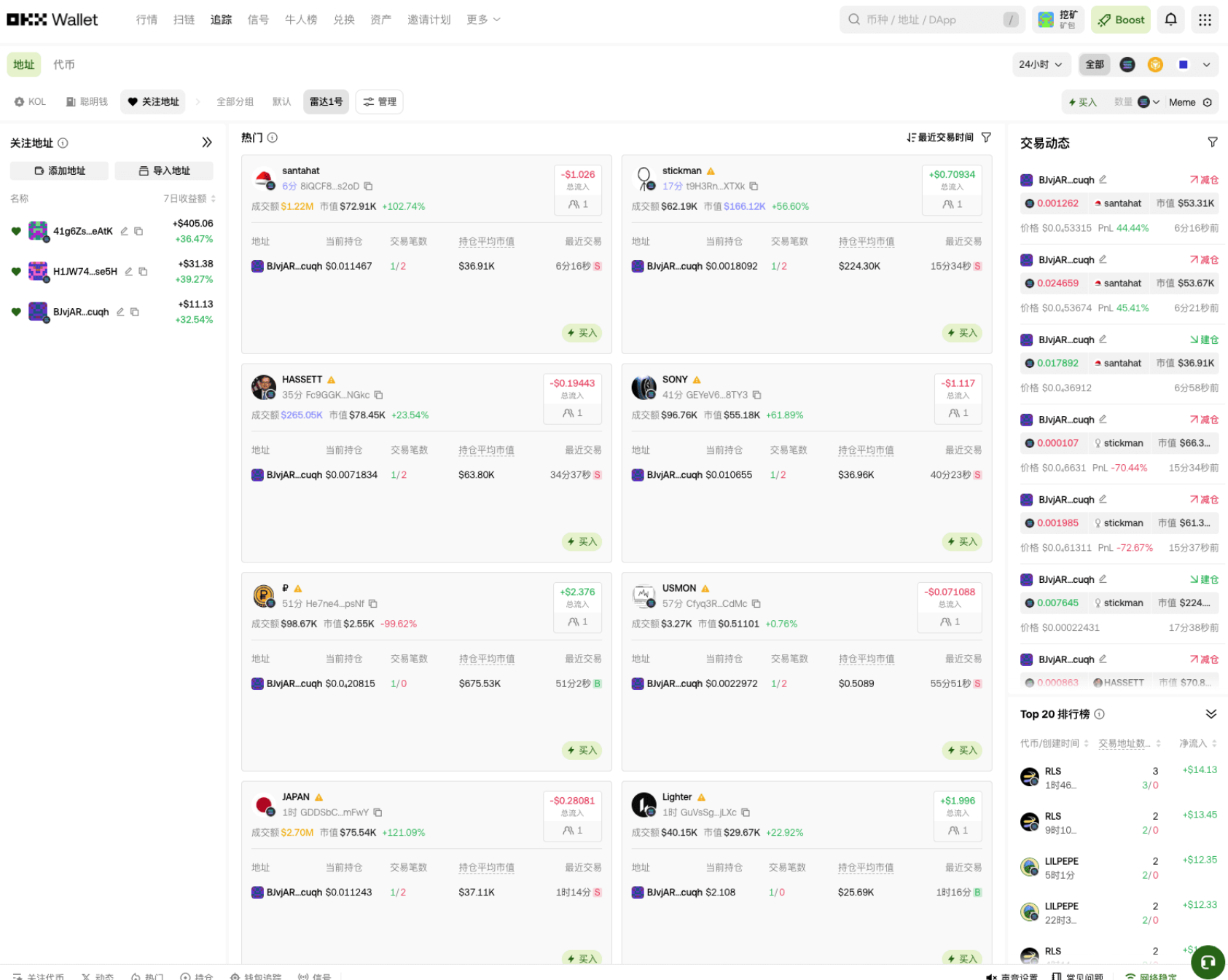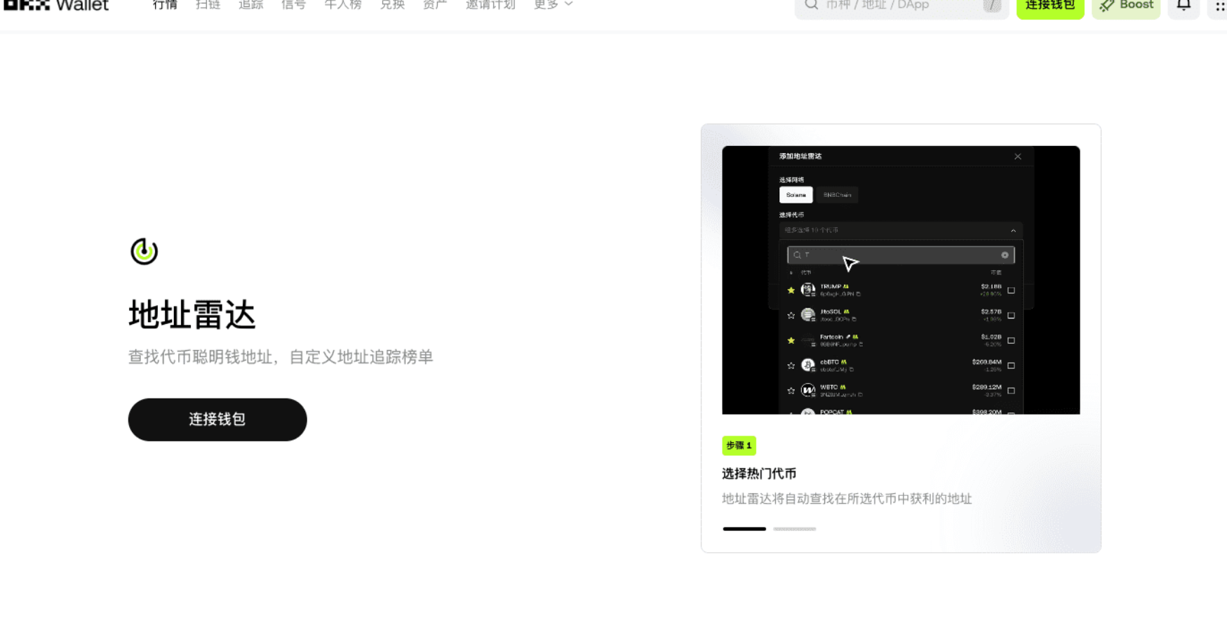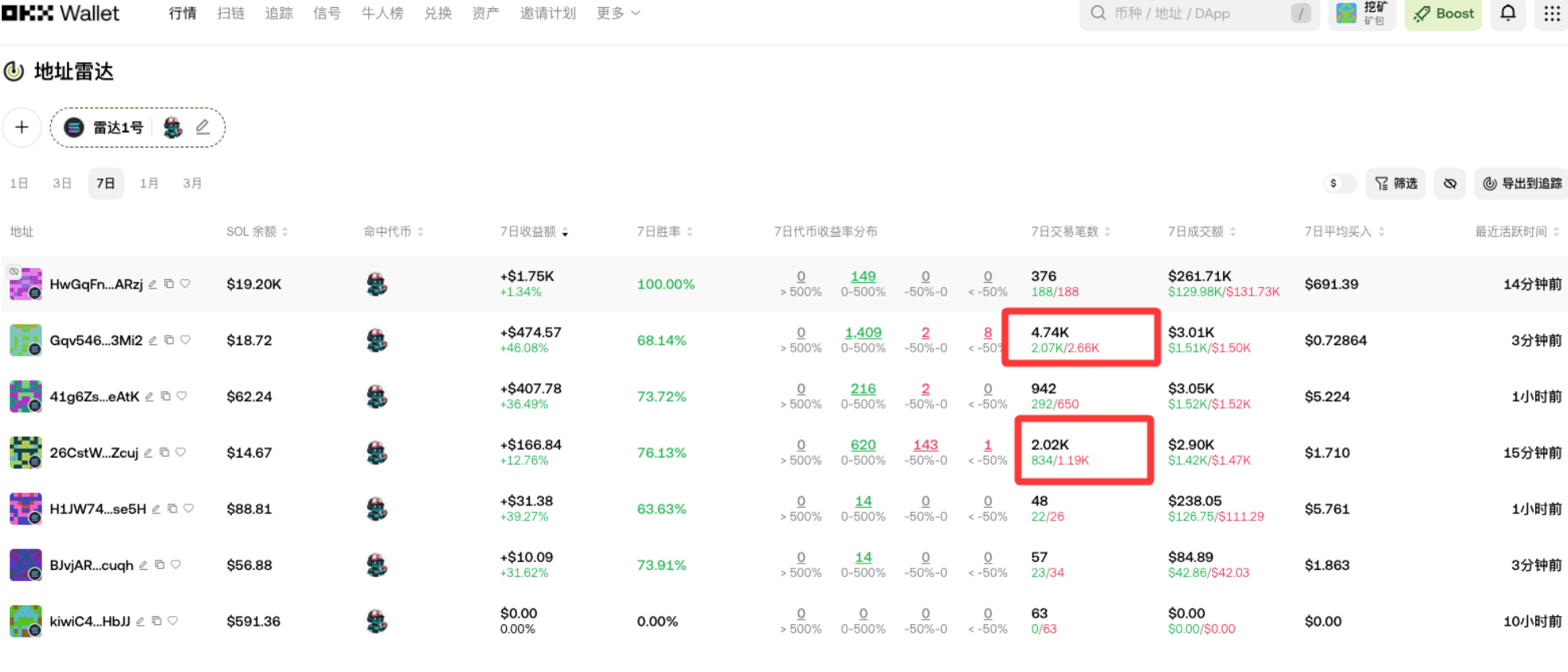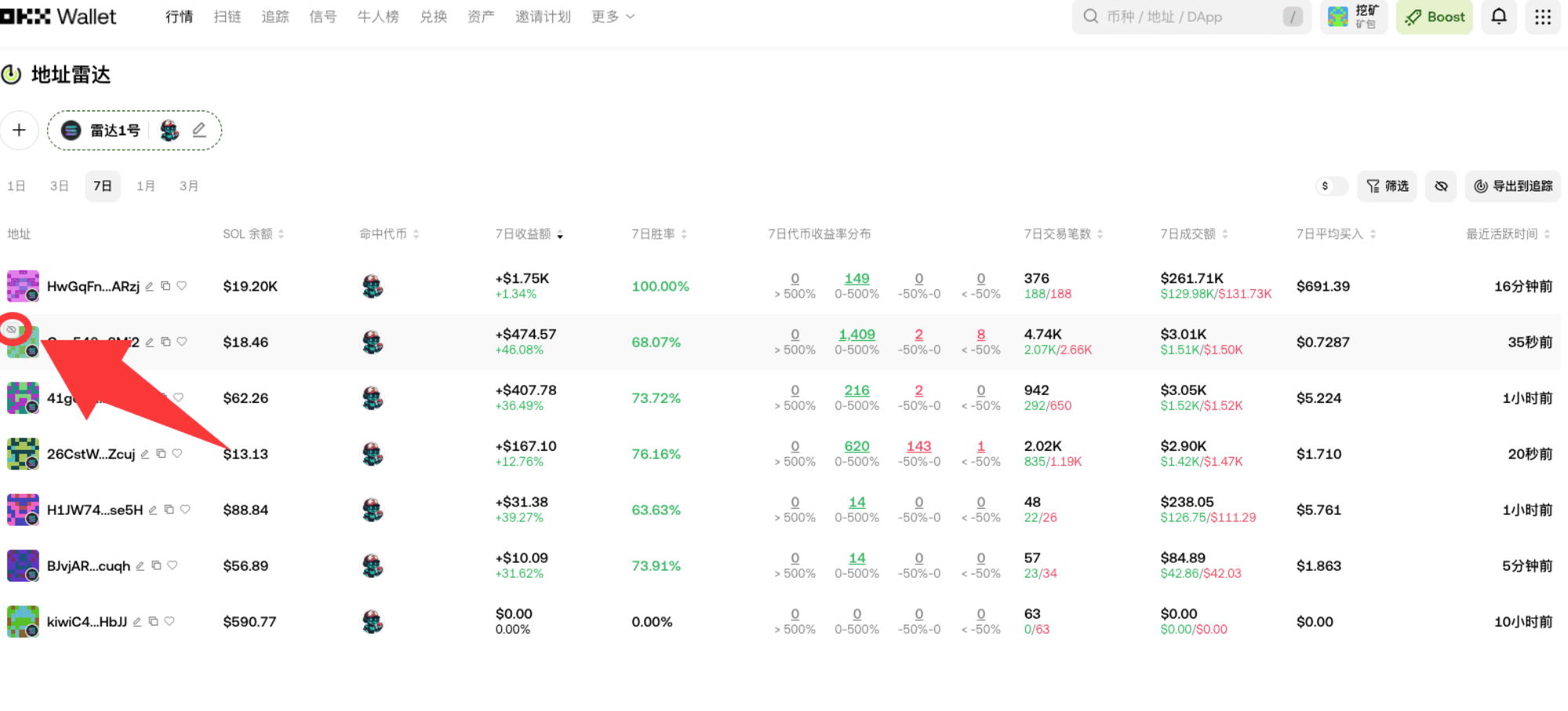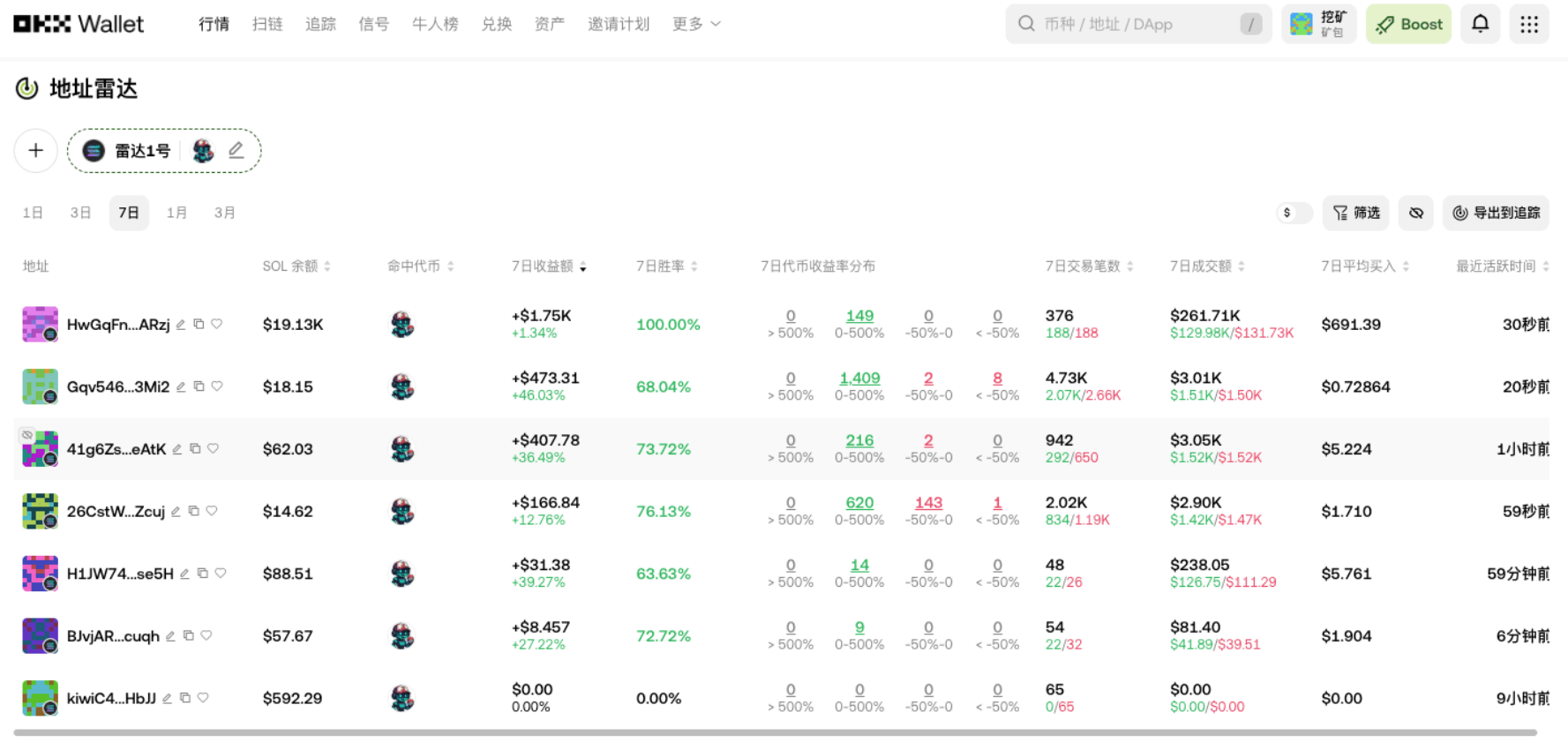 以前手动追聪明钱别提多累了,翻数据翻到眼酸,还容易漏关键信息,最后要么追在高点,要么跟错假主力。但 OKX 钱包的地址雷达一上线,直接解放双手!