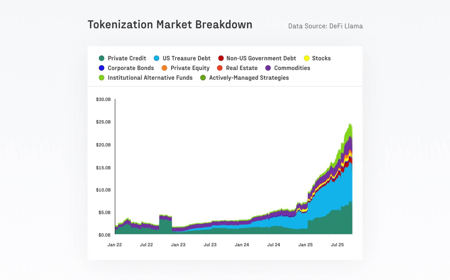 随着资金持续流入,代币化基金已成为增长最快的资产类别之一,为资产管理机构开辟了新的分发渠道。这反映出资产上链范围正在扩大,以及机构对代币化作为分发与流动性渠道的接受度不断提高。