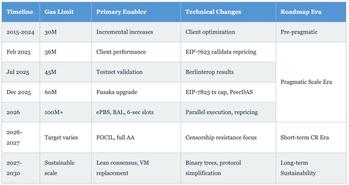Gas Limit扩容在2025年经历了三个步骤,最终在2025年12月的Fusaka升级中固定在6000万: