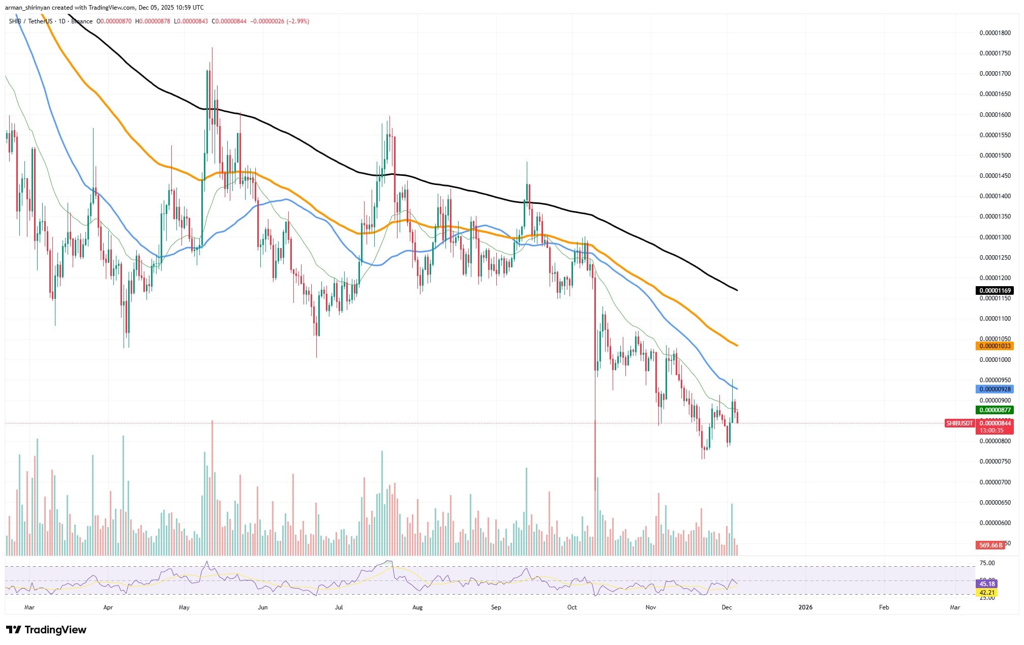 SHIB/USDT图表来自TradingView