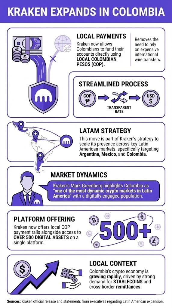 Kraken,这家总部位于美国的加密货币交易所,正在采取措施扩大其在哥伦比亚的影响力和覆盖范围。