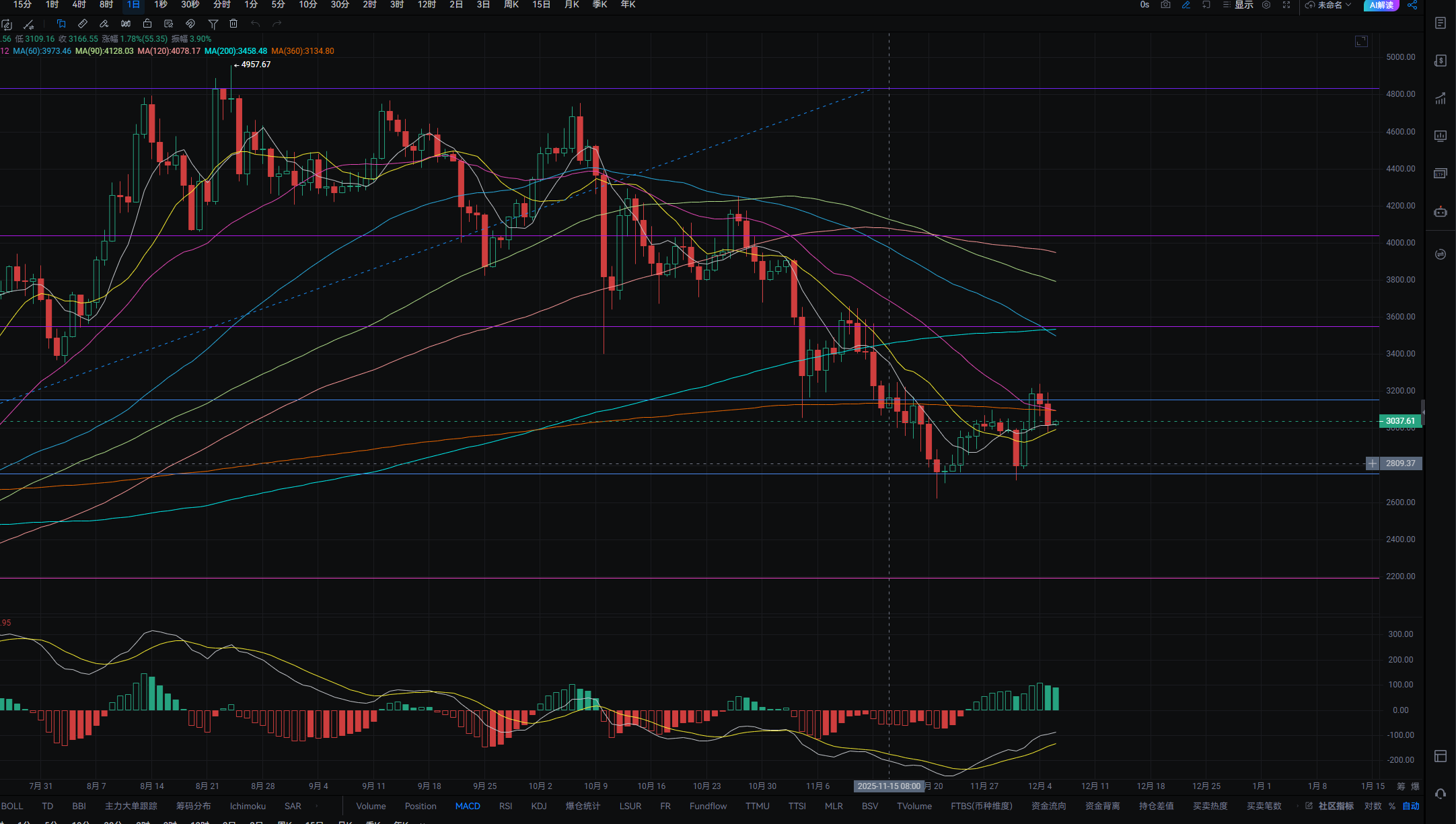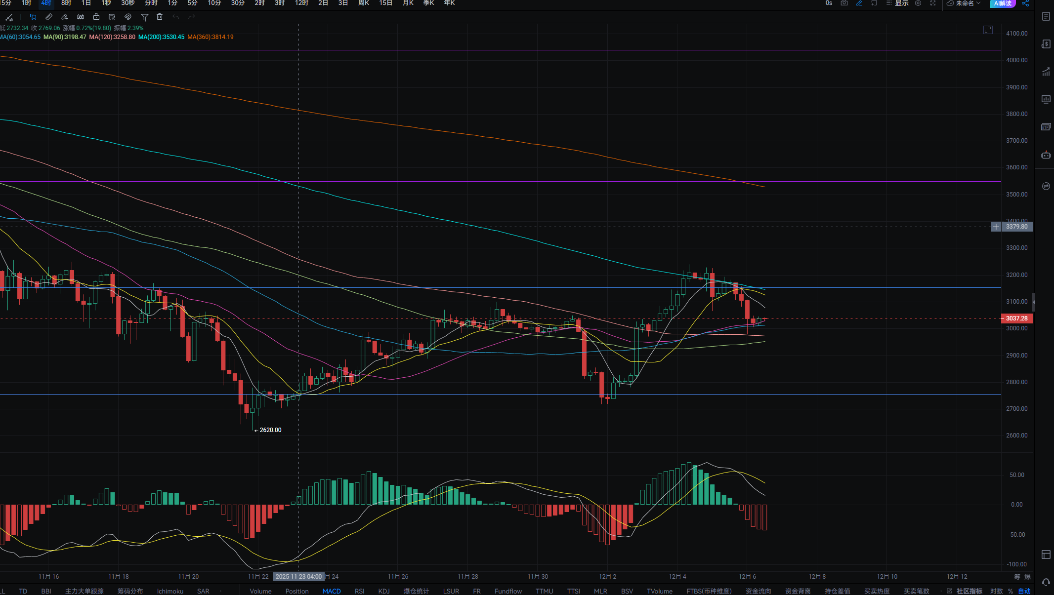 相比BTC来说,最近ETH的反应确实算是不错了,周四 Bitcoin 净流出而 ETH 继续保持净流入,虽然流入的资金不算多,但起码说明投资者还是对目前价格的 ETH 兴趣更大一些,当然,这也和多数 ETH 现货 ETF 投资者才处于成本线有一定的关系。目前以太还在3000上方苦苦支撑,四小时方面MACD形成了死叉,上方可在3080至3125附近进行接空,可以看至2950附近