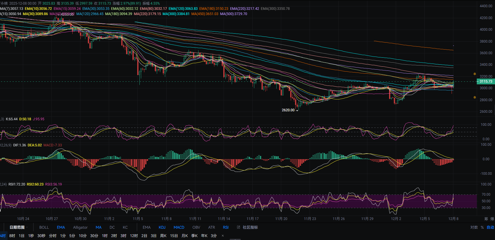 张历辉北京时间12月8日3点44分编辑:今日以太坊(ETH)行情分析及操作建议: