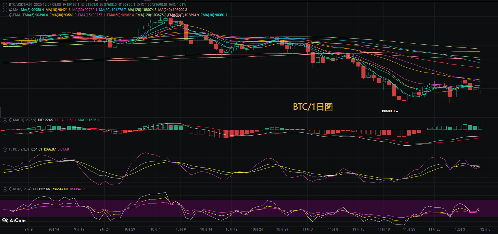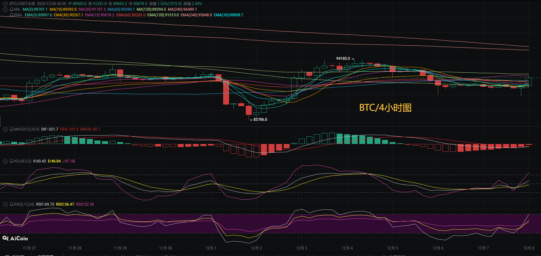 比特币行情日内晚间反转多空向上破位,短时间内日内涨幅近4000多点,突破9万关口一线压制,多头情绪开始回暖升温。日内走势打破前期弱势震荡节奏,目前价格在9万上方区域运行,后续若能企稳9万上方一线,预计日内涨幅还会延续,稳健的朋友可以等稳健顺势把握一波短多。