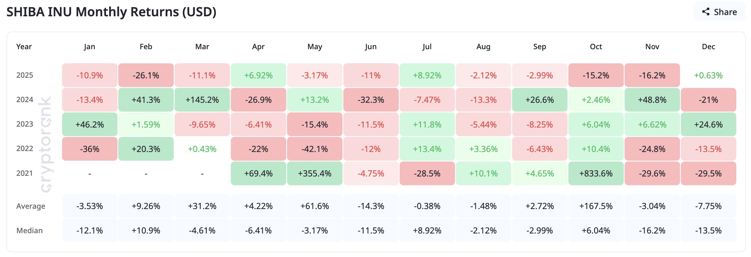 SHIB的价格历史也没有帮助建立信心,因为2023年是这枚迷因币唯一成功上涨的12月。