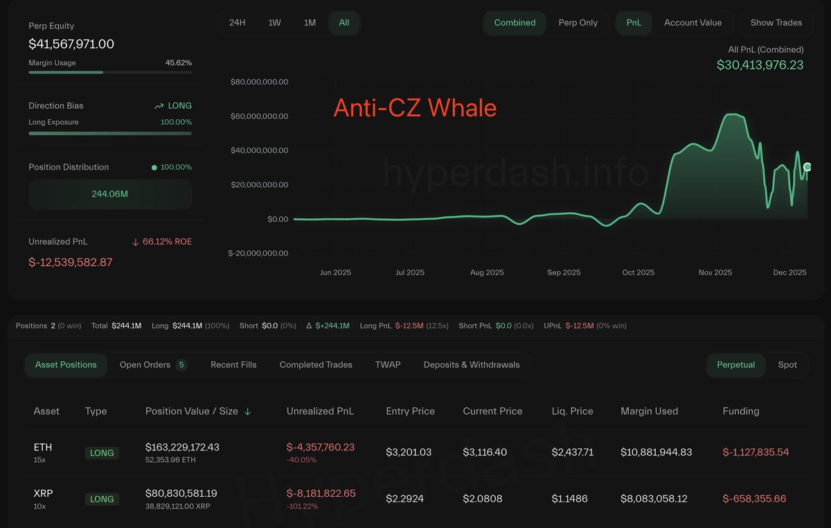 Anti-CZ whale, with $58.8M in total PNL, is long 62,156 $ETH($194M).