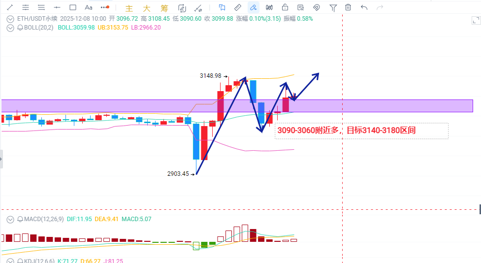 建议以太3090-60附近多单进场,目标3140-3180附近