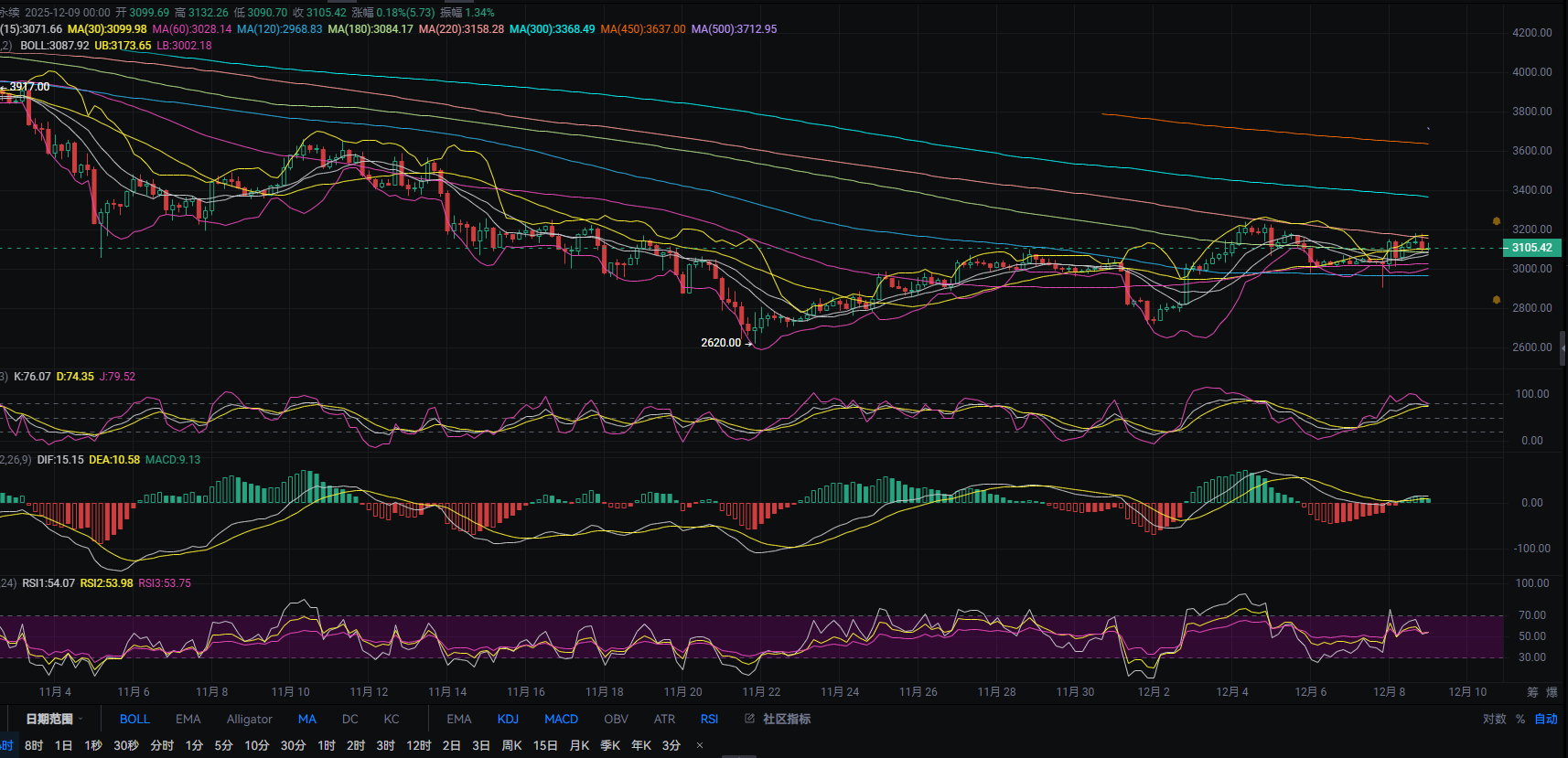 Zhang Lihui, edited at 1:38 AM Beijing time on December 9: Today's Ethereum (ETH) market analysis and trading suggestions:
