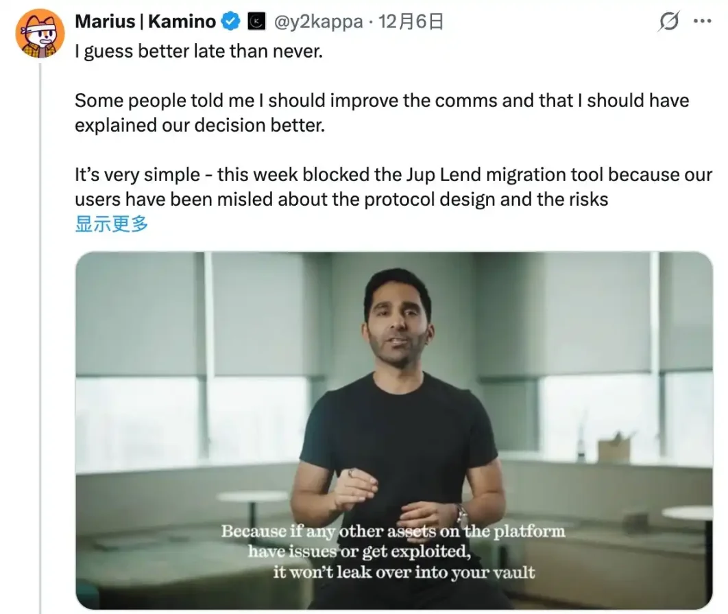 The incident can be traced back to August of this year, when Jupiter's official team emphasized multiple times during the promotion of their lending product, Jupiter Lend, that it featured "risk isolation" (the related posts have been deleted), meaning that there would be no risk cross-contamination between different lending pools.