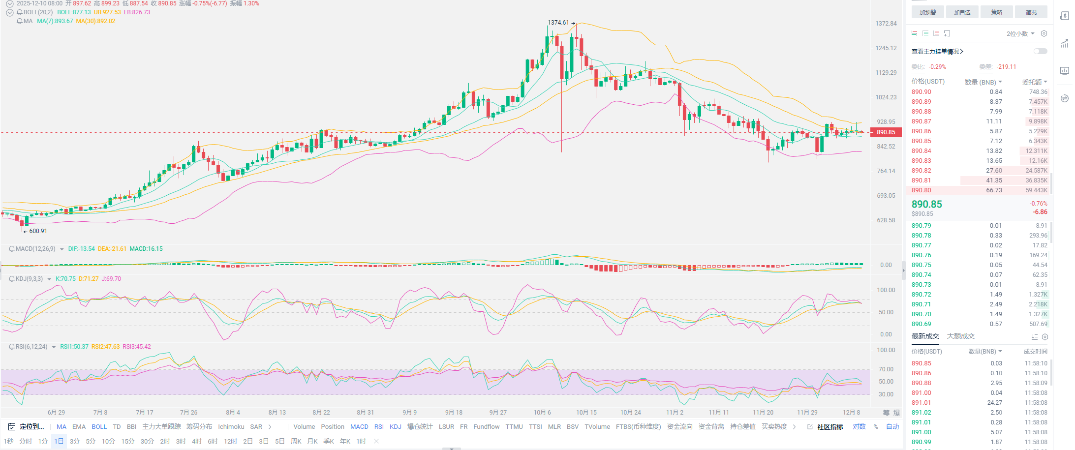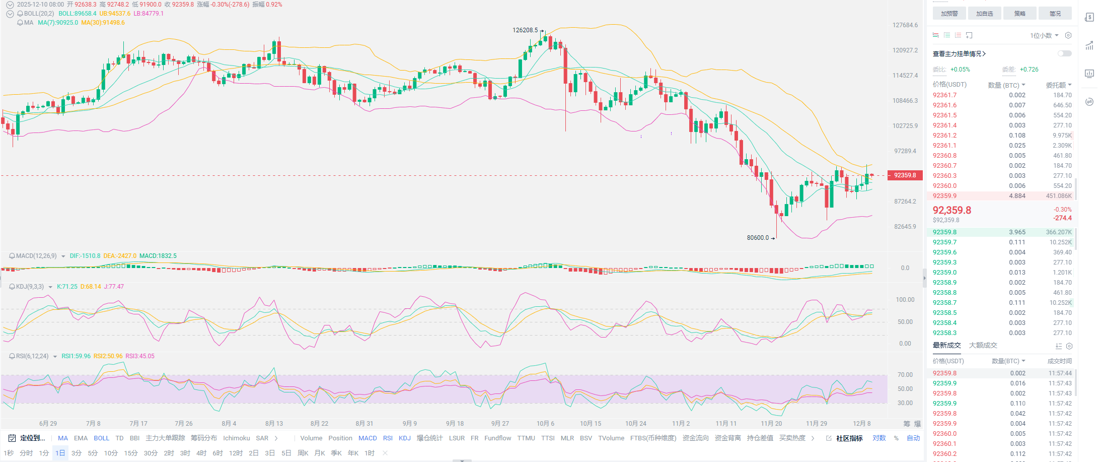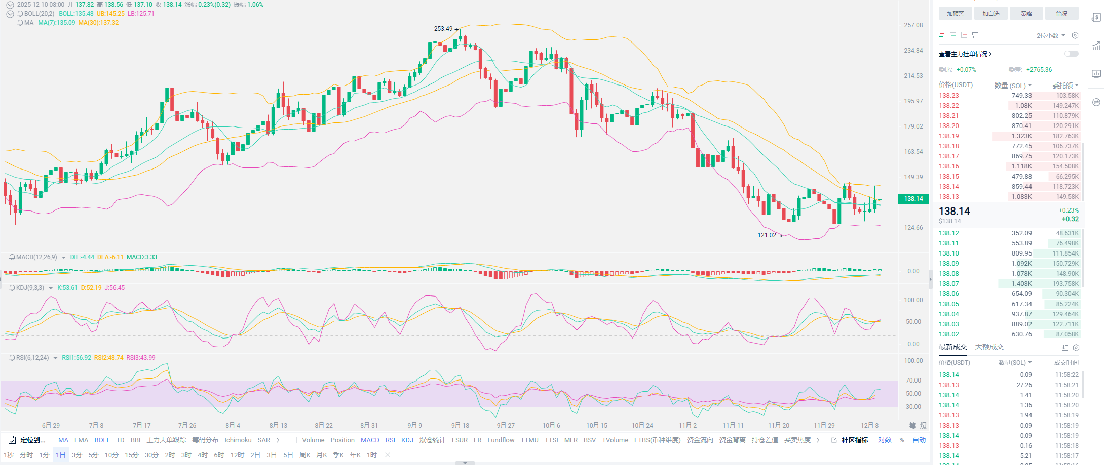 老崔总结:近期不想过多与大家啰嗦行情,整个趋势与我们前期预估并无出入。如果各位手中有套的较为深的现货,尤其是老崔之前推的SOL之类币种,很多朋友都是中途加入,现阶段大多都是亏损状态,这种持仓,至少要准备半年的时间。同时老崔建议各位,可以质押一部分,收益远高于很多市场,不强烈去推,就看个人意愿。质押时间就选择1-3个月左右,届时行情或许会走得更好,尽量选择72小时内能够赎回的产品,灵活运用。关于合约用户,空单被套不要置之不理,做一做操作吧,尤其是降息会在11号凌晨三点开始,搞不好还要往上突破一下,低位能出就出,亏损状态尽量锁仓 ,用更大的仓位做一做多单,拉回损失。如果有操作方面不太理解的用户,尽量与老崔保持沟通。