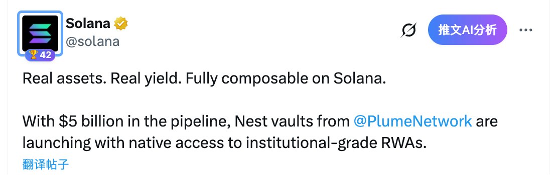 In addition to regulatory approvals, the news of Plume launching RWA assets on Solana on the 12th is also noteworthy—