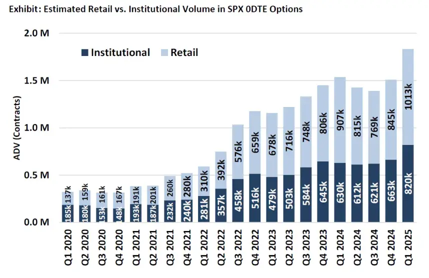 0DTE options trading volume can be seen as an indicator of retail gambling