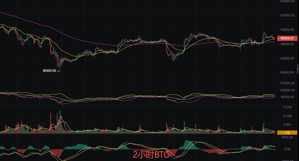比特币现价92000,丽盈判断大饼BTC震荡格局在80600强支撑和97523强阻力之间反复波动。技术面显示,均线系统走平且纠缠,市场动能不足,趋势横盘,短期内缺乏明确的方向性驱动。然而,值得注意的是,虽然动能减弱,但短期内出现了看涨反转的吞没形态,