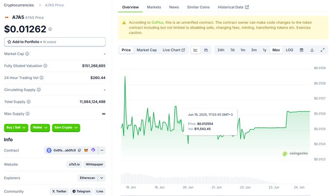 - 2025 年 7 月,A7 官方 Telegram 频道直接宣布向 A7A5 DEX 注入 1 亿美元等值 USDT 流动性,以应对市场对「 A7A5 ↔ USDT 最优价」的需求。