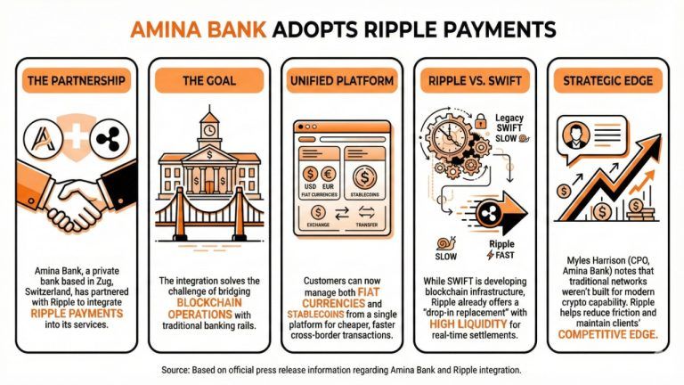 Amina Bank is the first European institution to implement Ripple Payments, strengthening its position in the digital asset space and supporting wider adoption of blockchain technology.