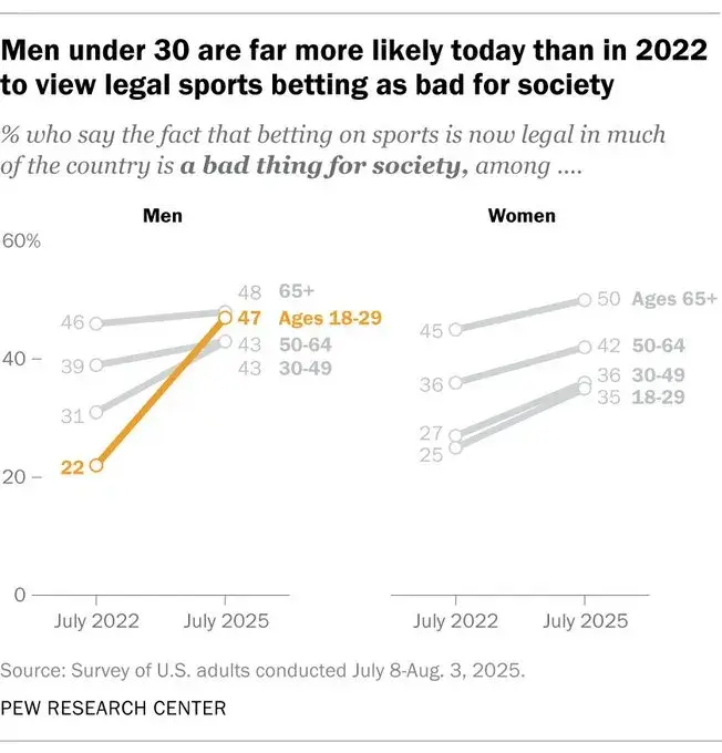 确实存在非常真实的经济痛苦,参与社会变得更加困难。年轻人曾投票支持特朗普以改善经济,但现在他们正在转而反对他。根据耶鲁大学 2025 年秋季青年民意调查(Yale Youth Fall 2025 Poll),18至29岁的年轻人对特朗普总统的经济处理方式表现出强烈的不满。