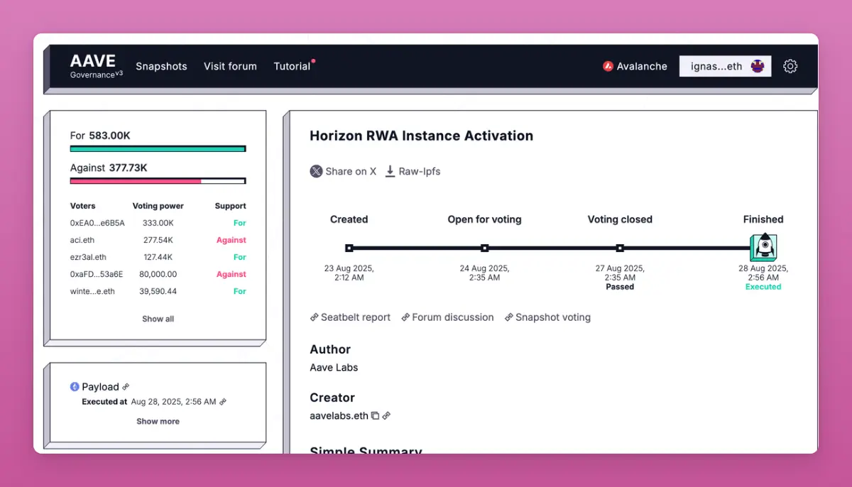 Despite numerous concerns (one of which explicitly pointed out the clear responsibilities of Aave Labs and the DAO), Horizon still went live. This was the most controversial vote victory.
