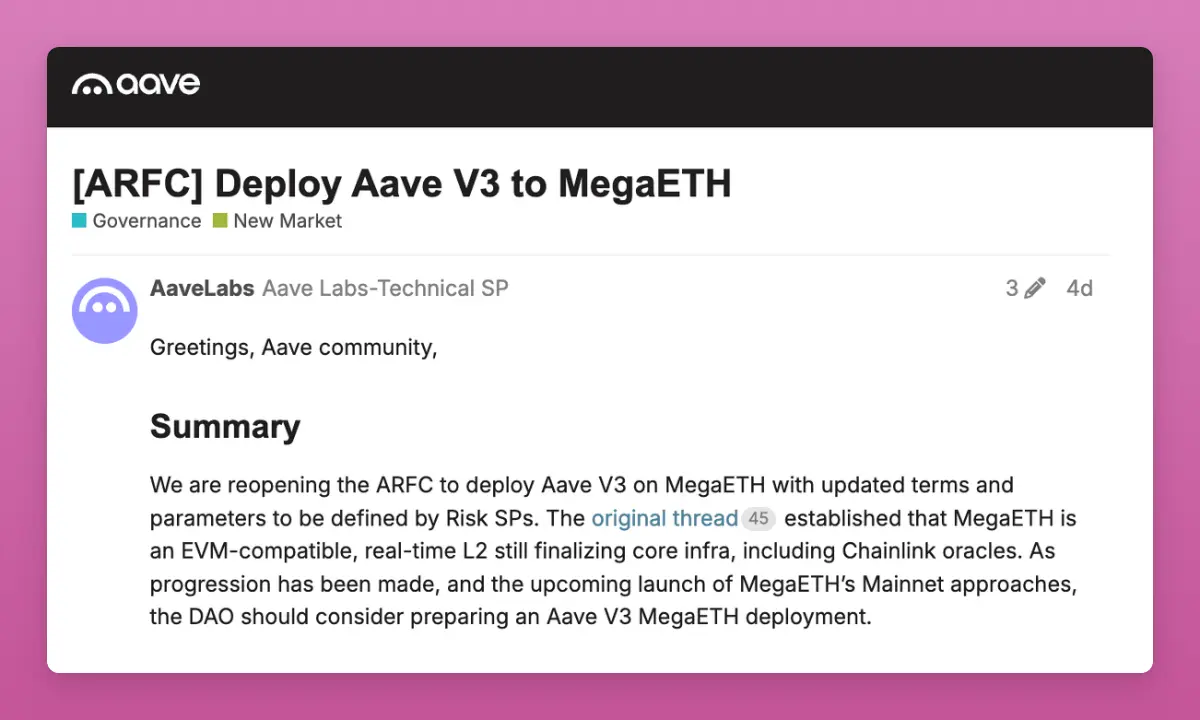 A few days after Aave Labs proposed a DAO proposal to deploy Aave V3 on MegaETH, relevant discussions immediately began.