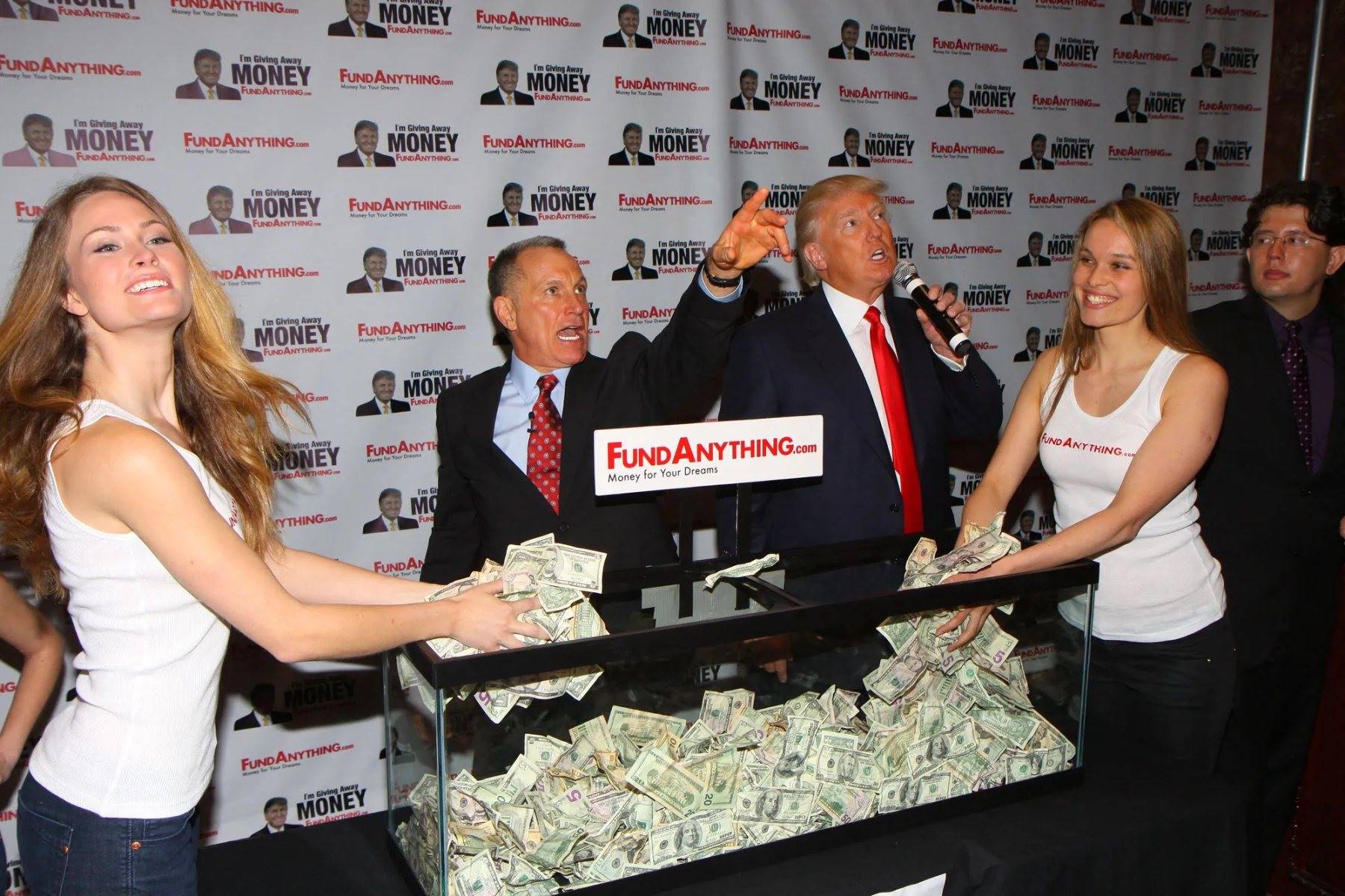 这个名字并不陌生。71 岁的赞克是位企业家,曾与特朗普合著 2007 年的《大胆思考,在商业与生活中勇往直前》。几十年来,他推广过灵媒热线、拳击馆、连锁按摩院;真正让他成名的,是一家名为 Learning Annex 的研讨会公司 —— 该公司开设的课程包括「如何开贺卡店」「如何对配偶不忠」等。2000 年代,他举办的「房地产财富博览会」场场爆满,特朗普是当时的明星嘉宾。2013 年,两人还在特朗普大厦召开新闻发布会,推出一款众筹网站 —— 会上,穿着白色背心的模特从鱼缸里拿出一沓沓现金分发给现场观众。赞克当时这样介绍特朗普:「他是点石成金的人,是有金子般心灵的人,是能改变我们所有人生活的人。」但这款网站最终不了了之。