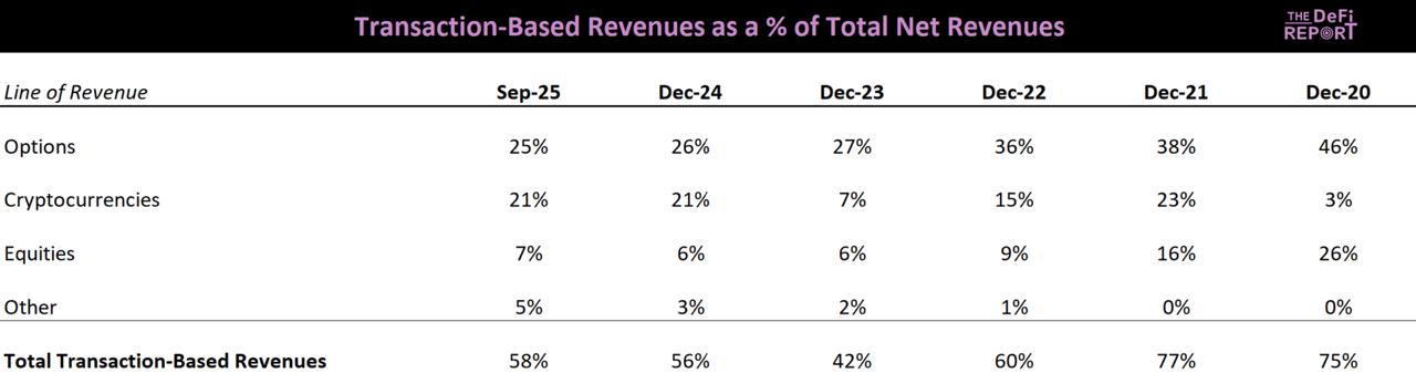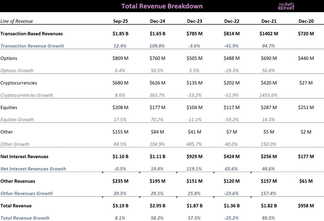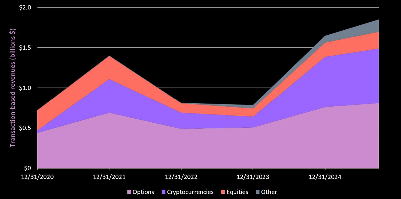 This indicates: 1) Transaction-based revenue is growing (covering stocks, options, and cryptocurrencies); 2) Robinhood has been adding new revenue lines.
