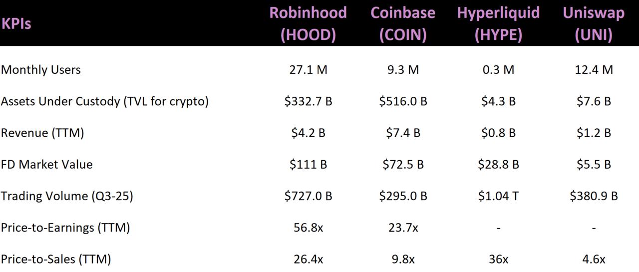 In the cryptocurrency-native service space, Robinhood is actively challenging Coinbase's market position and holds a leading advantage in tokenization strategy. Based on these factors, we believe Robinhood has the potential to become a leading institution in the financial industry.