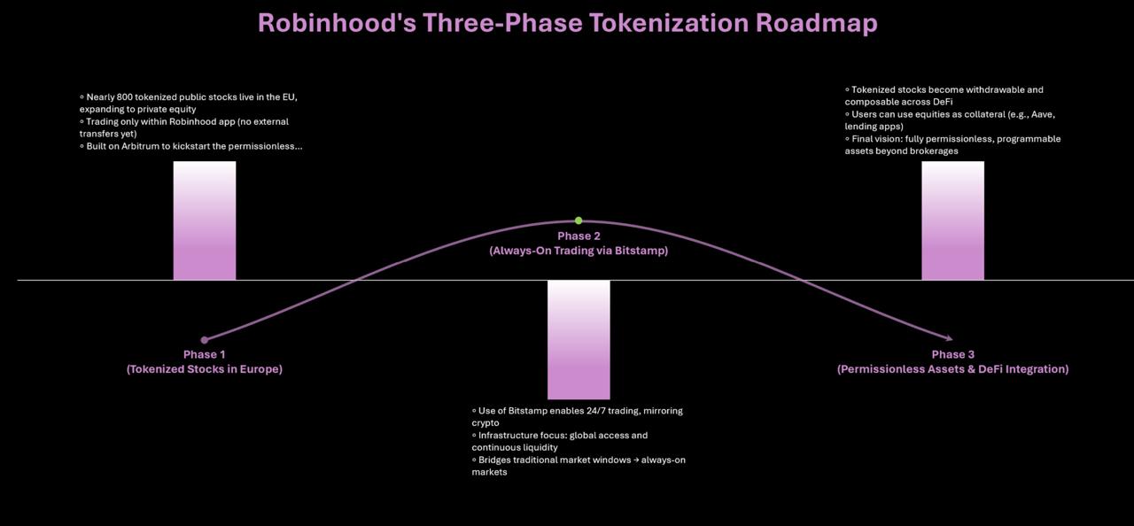 Robinhood is building a full-stack platform encompassing tokenization, cryptocurrency trading, and financial services.