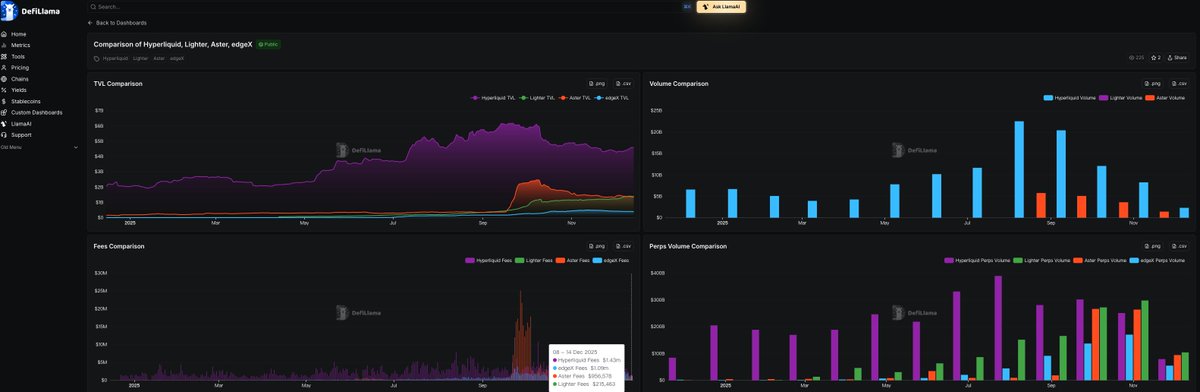 Recently, I've been experiencing the @DefiLlama Pro version, and it feels much better than Dune, especially for data 📊 comparison, which is very clear at a glance!