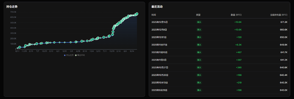 ● 这一增持规模创下了自2025年7月以来的新高,甚至略微超过了前一周的购买量。Strategy的比特币总持有量已经达到671,268枚,占比特币总供应量的超过 3%。
