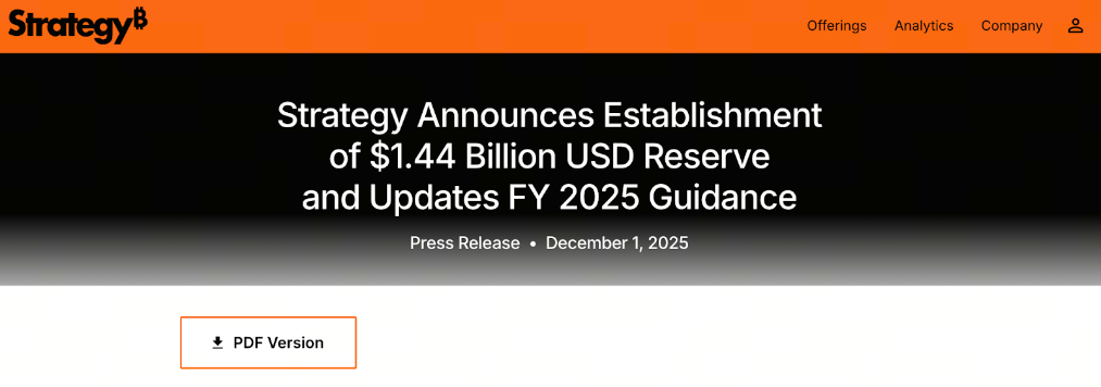 ● 在激进增持比特币的同时,Strategy在12月初采取了另一项关键财务举措——建立了 14.4亿美元 的现金储备。这一储备专门用于支付优先股股息和债务利息,旨在将股东回报与比特币价格波动“解绑”。