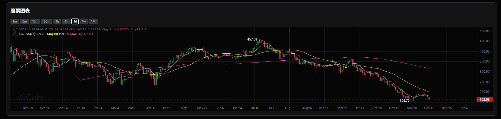 ● 尽管Strategy在增持比特币方面表现激进,但其股价却呈现疲软态势。截至12月13日,Strategy的普通股上周整体下跌 3.8%,年初至今已下跌 41.2%。