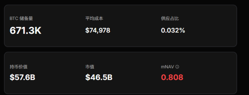 ● 这与比特币自身的表现形成对比,比特币在2025年迄今的损失仅为3.8%。截至12月15日,Strategy的市值与净资产价值比率(mNAV)约为 0.808,这意味着其股票交易价格低于其比特币持有量的价值。