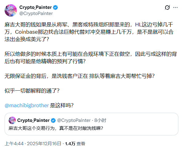 ● There are market speculations questioning whether Huang's trading behavior involves "wash trading for money laundering," but a careful analysis of his trading patterns and fund flows suggests this is unlikely. Wash trading typically involves opposite-direction trades between two or more accounts to transfer funds without revealing true intentions. However, Huang's trading shows completely different characteristics.