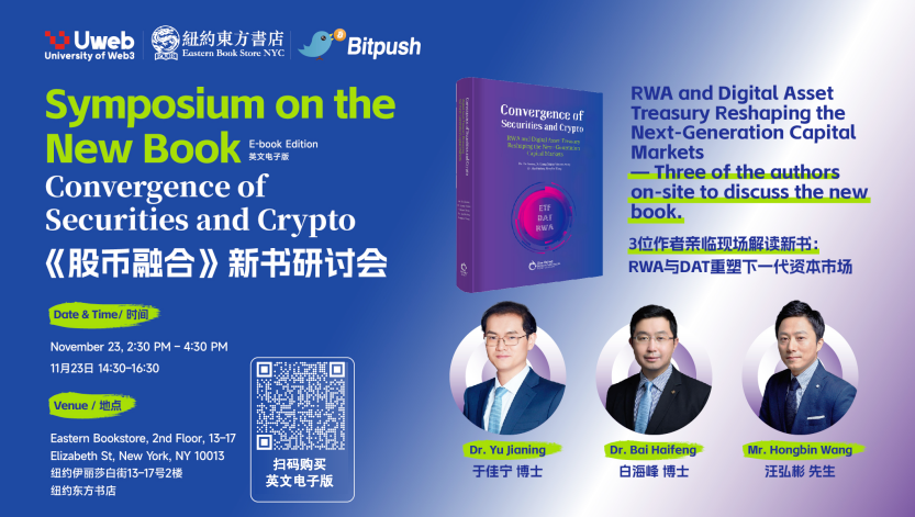 As capital markets enter the fast lane of convergence, understanding the operational logic behind RWA and DAT is no longer an elective course for a few pioneering institutions but will become a required course for participating in the new round of global financial competition. The book "Convergence of Securities and Crypto" attempts to provide a clear roadmap for this profound transformation, helping regulators better build rule frameworks, assisting institutions and entrepreneurs in finding upgrade paths, and enabling every reader concerned about the future of wealth forms to see the outline of the next generation of capital markets.