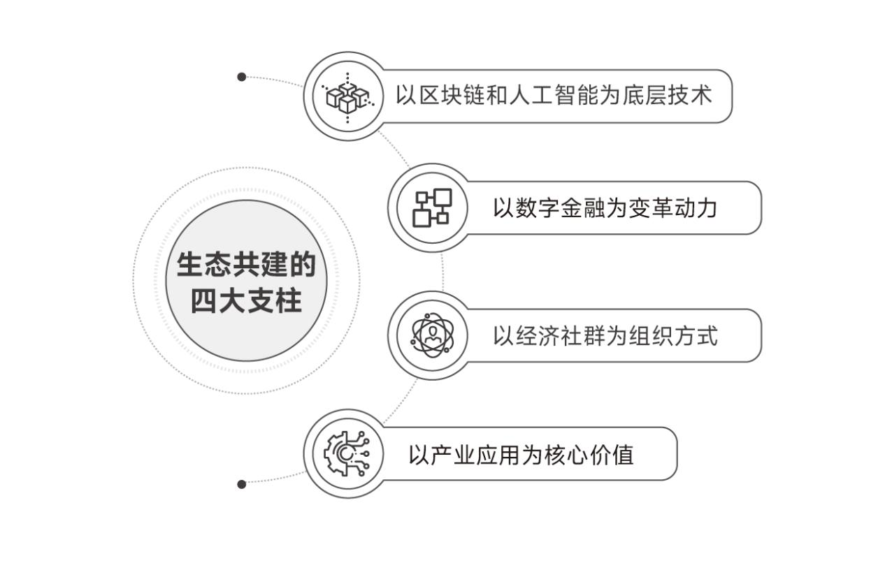 Moreover, the ecological co-construction of convergence will feature four pillars: blockchain and AI as underlying technologies, digital finance as the driving force for transformation, economic communities as organizational forms, and industrial applications as core values. These pillars interact continuously to form a synergy, gradually shaping new market logic.