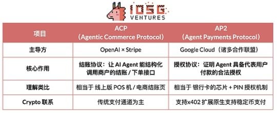 AP2 以「Payment-Agnostic」为设计原则,同时支持信用卡、银行转账、实时支付以及通过 x402 等扩展接入稳定币等加密支付轨道。在整个 Agentic Commerce 协议栈中,AP2 不负责具体商品与下单细节,而是为各种支付渠道提供通用的 Agent 支付授权框架。