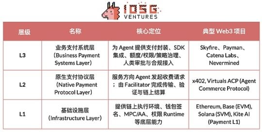 当下智能体商业(Agentic Commerce)的 Web3 生态可分为三层: