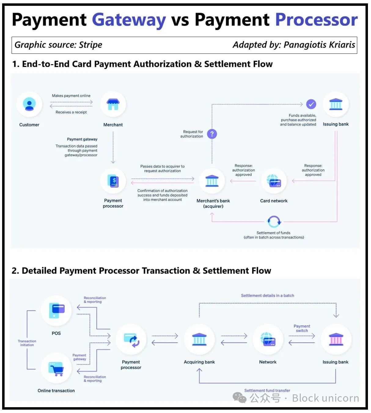 如果稳定币才是核心价值所在,那么传统的支付体系就显得过时了。如今的支付系统涉及多个中间环节:支付网关负责收款,支付处理器负责路由支付,卡网络负责审批,双方银行负责结算。每一步都会增加成本和延迟。