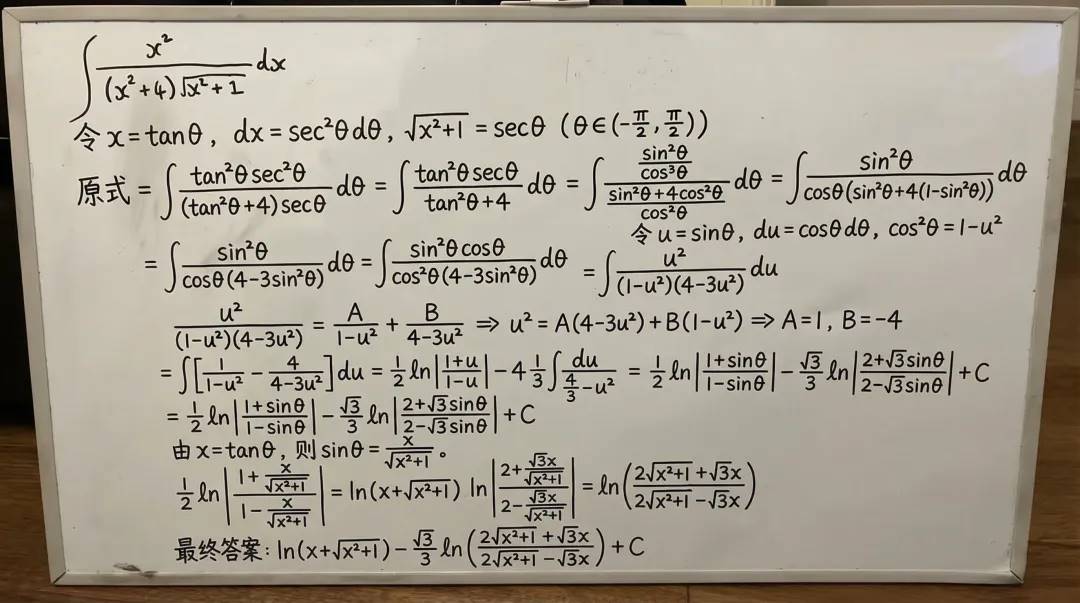提示词「解给定的积分,并把完整的解写在白板上」|图片来源:nanobaba2