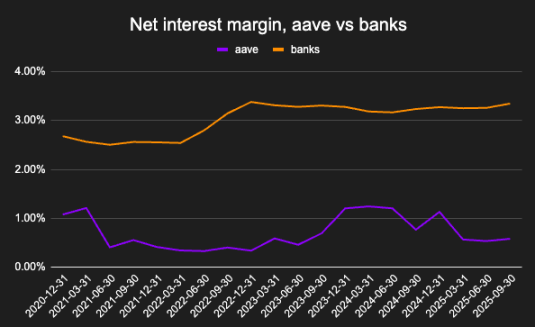 本文将探讨以下问题:当前借贷协议的实际应用方式、其利润率在结构上低于银行的原因,以及随着借贷业务逐渐脱离加密原生杠杆周期,这种局面可能发生的变化。