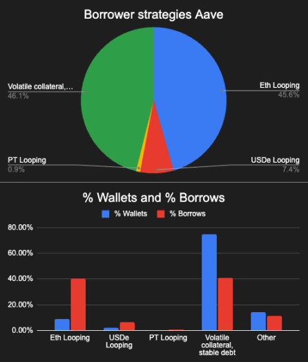 1)Aave 钱包借款策略权重分布;2)各策略对应的钱包数量分布