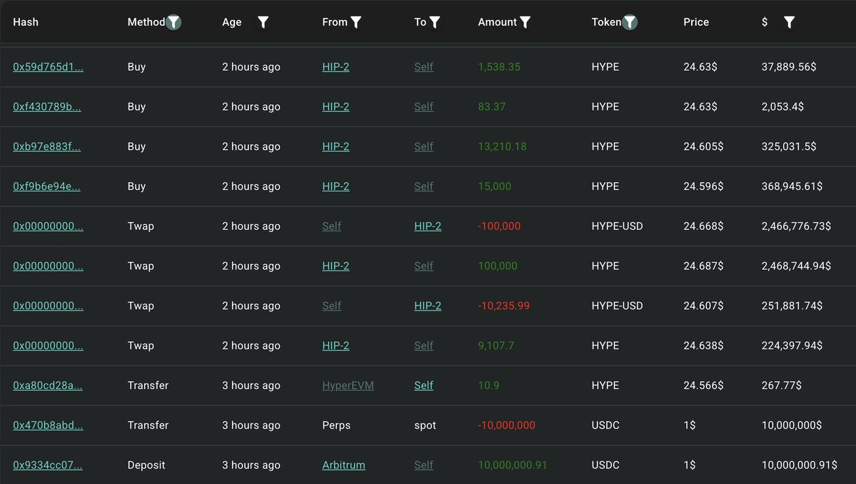 0xE867 deposited 10M $USDC into Hyperliquid to buy more $HYPE and now holds 926,488 $HYPE($22.4M).