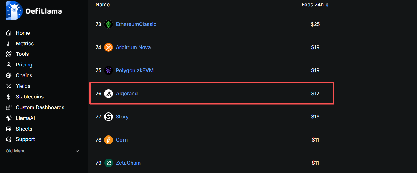这是 Algorand——这条曾经头顶“区块链不可能三角解决者”、由图灵奖得主 Silvio Micali 创立、拥有顶级技术背书的公链,某一天的全网协议收入。