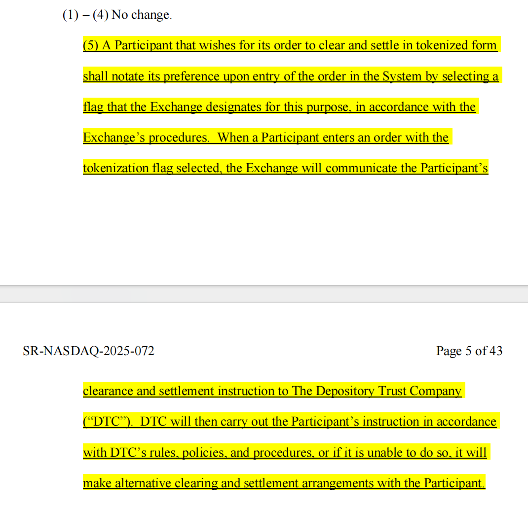 In early September 2025, Nasdaq applied to the SEC to issue stocks in a tokenized form. In that application, DTC was already mentioned.