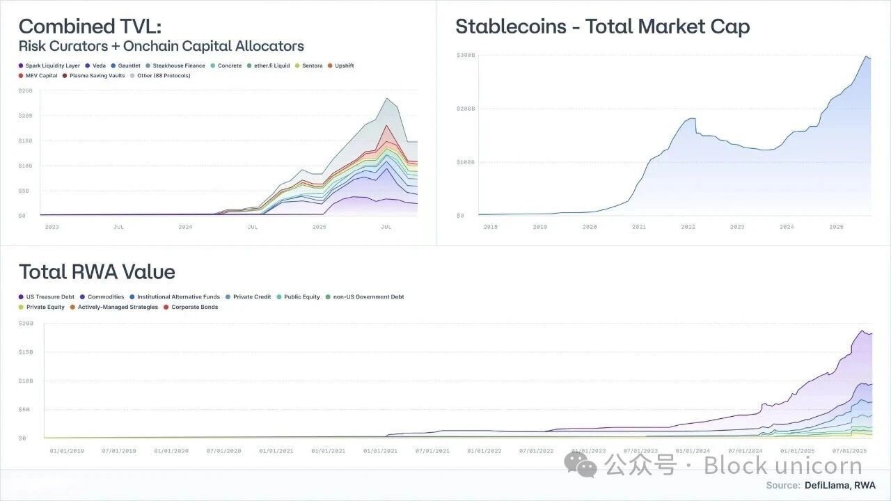风险管理机构和链上资产分配机构(Risk Curators and Onchain Allocators)这个几年前还几乎无人问津的行业,如今已由近百家公司管理着超过 200 亿美元的资产。